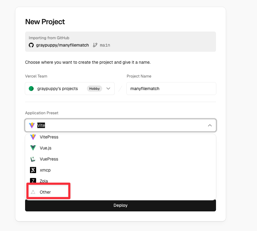 3、在创建工程页面,根据你在ai studio中创建时选择的框架选择部署框架。选择完后点击“deploy”,开始自动部署。